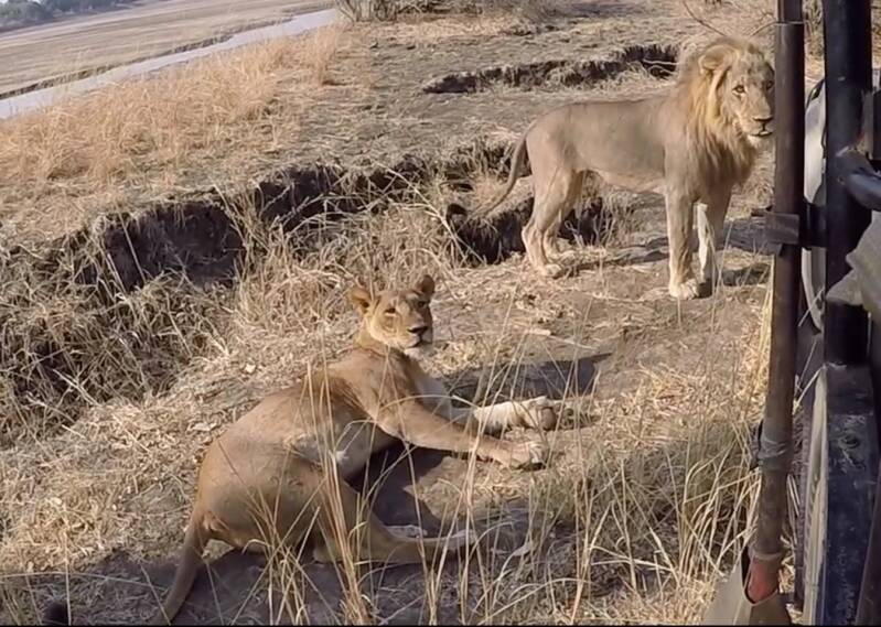 Robin’s house is now our house. Not my brother’s (also called Robin) this time. The romance deepens. Obi, our guide and host, becomes our friend. Obi shares some truly magical experiences with us safari addicts. Leopards line our route. Elephants share our pool. Lions mate within stroking distance. Obi’s wise fingers rest on the ignition, ready to roar should the need arise. And the photos for Emily’s It’s Monday storyline have a romantic bent. Ginger mates in the shade of Obi’s Landcruiser.